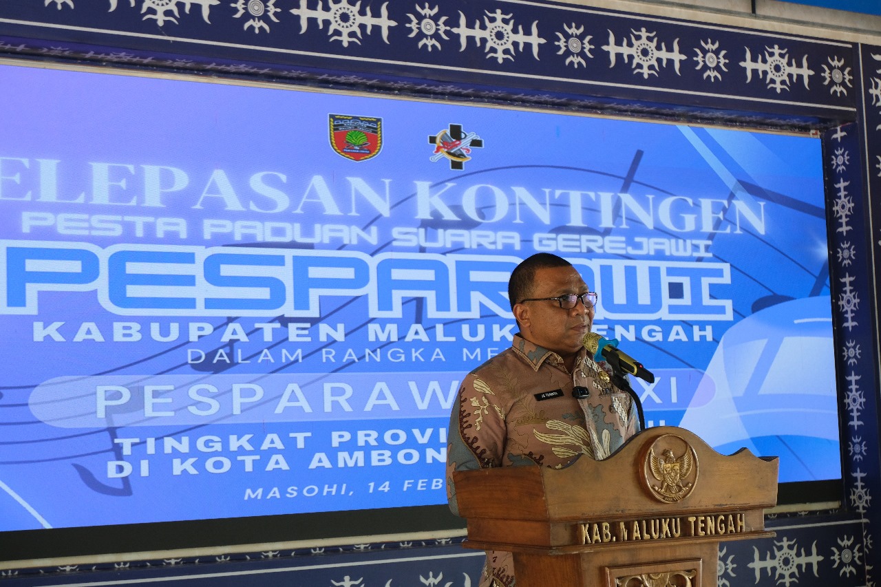 MASOHI – Jum’at, 14 Februari. Penjabat Sekretaris Daerah Kabupaten Maluku Tengah Bpk Jauhari Tuarita, S.Pi Menghadiri Acara Pelepasan Kontingen Pesta Paduan Suara Gerejawi (PESPARAWI) Kabupaten Maluku Tengah dalam Rangka Mengikuti Pesparawi Ke- XI Tingkat Provinsi Maluku di Kota Ambon Tahun 2025.