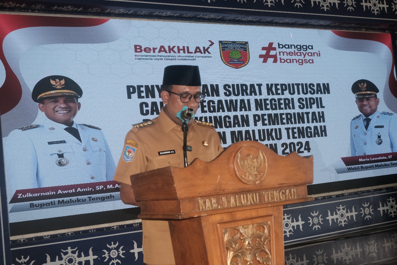 Bupati Maluku Tengah , Zulkarnain Awat Amir Serahkan SK CPNS Pemkab Maluku Tengah Formasi 2024