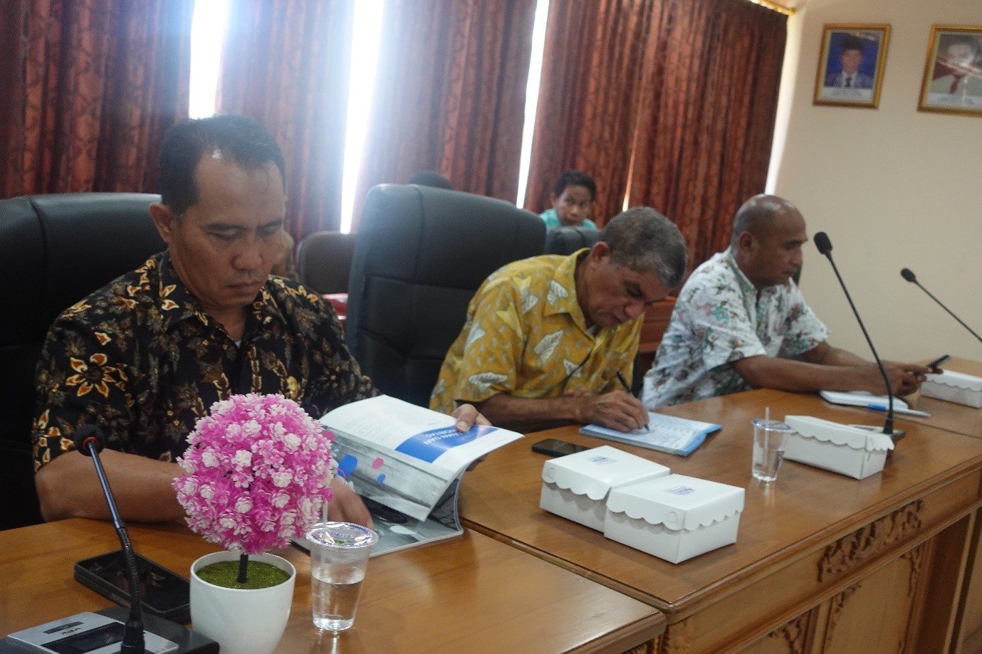 Disamping itu, “ Bagian Organisasi harus bersinergi dengan BKPSDM, bagian Hukum harus melakukan evaluasi di Peraturan Bupati bukan hanya sampai pada tingkat jabatan pimpinan pratama namun seharusnya sampai pada purnabakti (bagian hukum harus mengevaluasi peraturan bupati terkait manage sistem). Perizinan ada satu yg harus di pacu, berkolaborasi dengan inspektorat agar capaian bisa maksimal. Barang milik daerah (aset) yg sudah pemutihan harus tergambar jelas, BPKAD (Badan Pengelolaan Keuangan dan Aset Daerah) harus bersinergi dengan inspektorat agar dapat capaian yg lebih baik untuk MCP ”, paparnya.