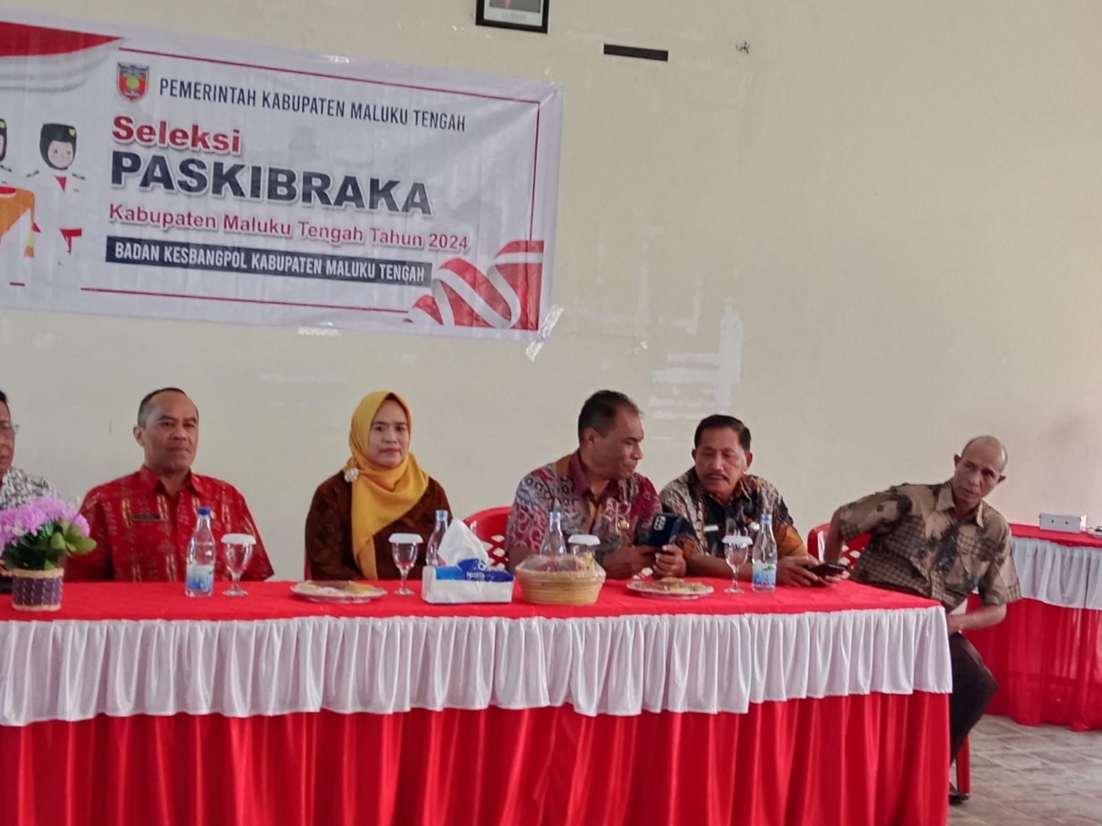 Dalam acara tersebut adapun laporan kegiatan seleksi Paskibra yang disampaikan oleh Kepala Bakesbangpol Kabupaten Maluku Tengah dan pada akhirnya memberikan tanda penyematan seleksi oleh Pj. Bupati Maluku Tengah yang di Wakili oleh Asisten 1 Setda Maluku Tengah. Seleksi Paskibra ini diadakan untuk memperingati kemerdekaan Indonesia 17 Agustus Tahun 2024 di Kabupaten Maluku Tengah.